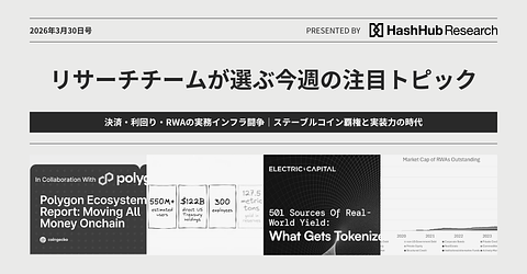 決済・利回り・RWAの実務インフラ闘争|ステーブルコイン覇権と実装力の時代:リサーチチームが選ぶ今週の注目トピック 2026年3月30日号