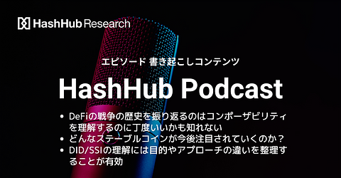 【HashHub Podcast】#9 DeFi戦争の歴史/ステーブルコイン各種概要/目的が異なるWeb2.5と3.0のDID・SSI【書き起こし】