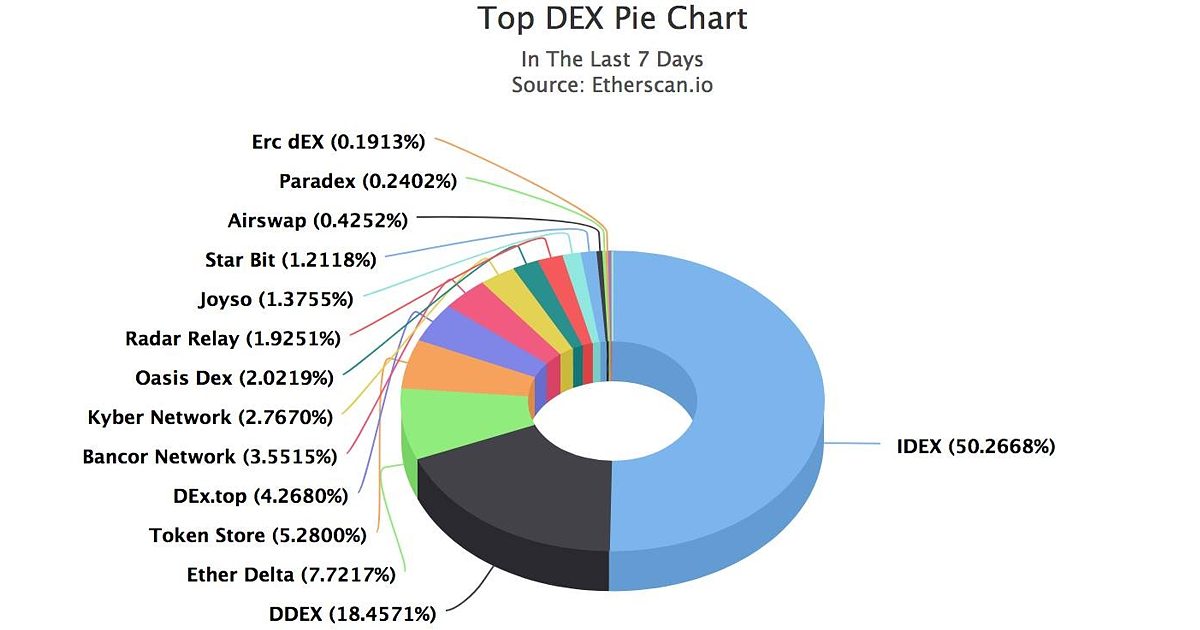 しかし、執筆時点で、EthereumのDEXのトランザクションベースで最も使用されているのは、このIDEXです。