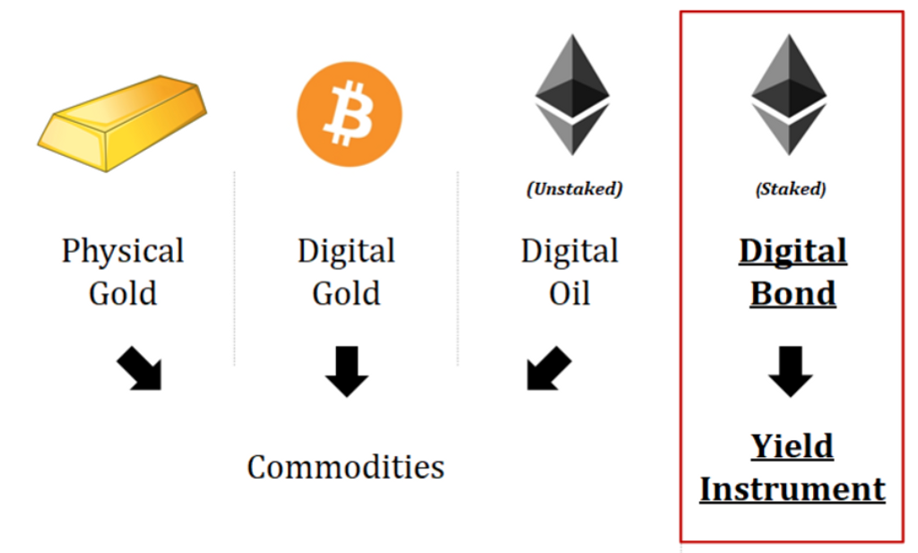 EthereumやDeFi(分散型金融)などの情報を配信するニュースレターBanklessでは、「PoS移行後のETHは債券のような性質を持つアセットになる」という見解が述べられています。いままでも度々Bitcoinはデジタルゴールドと呼ばれ、ETHはスマートコントラクトプラットフォームの使用手数料という意味で石油であると表現されて来ました。そしてPoS移行後のETHには、債券のような性質が加えられると予想されています。