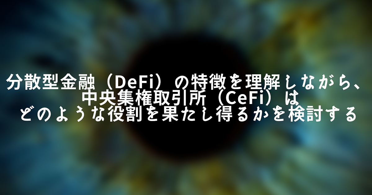 - 中央集権型取引所(CeFi)は分散型金融(DeFi)でどのような役割を果たし得るか
