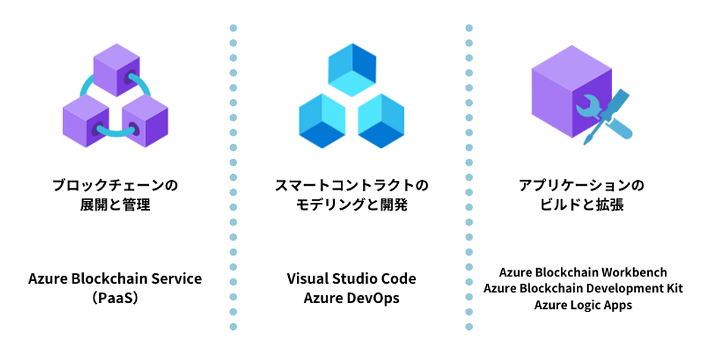 Microsoftは上記を網羅し、迅速なブロックチェーンアプリケーション開発を支援するためのサービス群を提供しています。