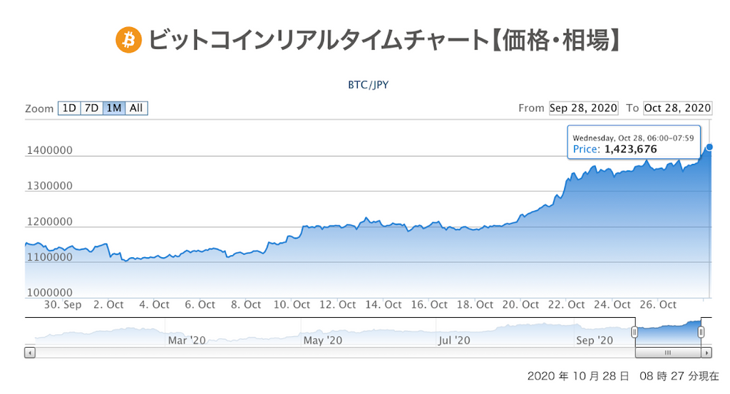 暗号資産市場が強気相場に突入しています。Bitcoinは2020年10月25日には年初来最高値を更新し、140万円台で取引されています。