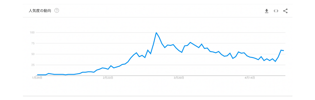 Google Trend NFTキーワードの検索量の変化(90日 1/29 - 4/29)