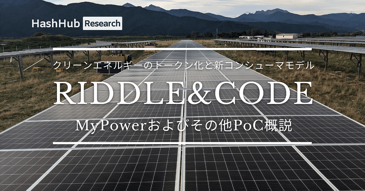 本レポートでは分散型エネルギートークナイゼーションプラットフォームMy PowerおよびRIDDLE&CODE社を概説します。