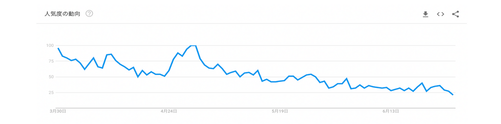 Google Trend NFTキーワードの検索量の変化(90日 2/26 - 5/26)