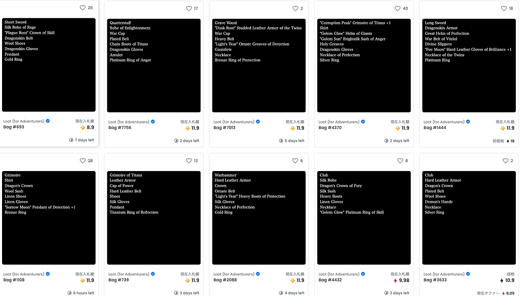 Loot (for Adventurers) NFTマニアを騒がせたテキストベースのコレクティブルアイテム