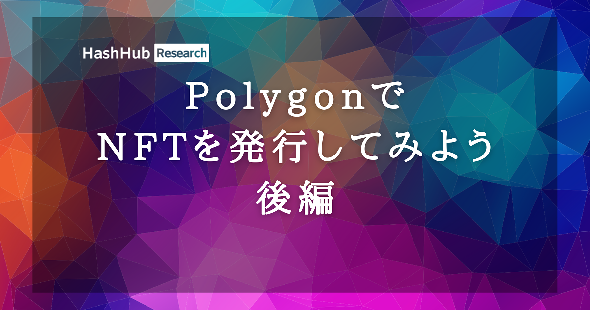 関連レポート:PolygonでNFTを発行してみよう【前編】