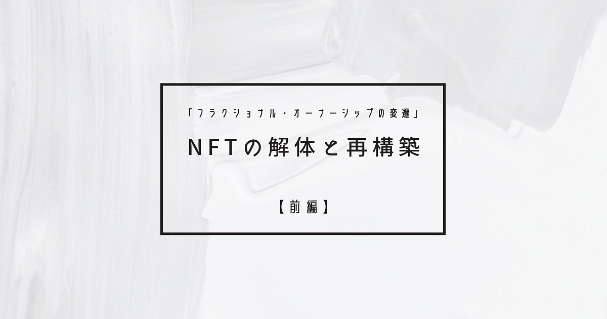 【前編】ではNFTにおけるフラクショナル・オーナーシップ事例を概説し、主に「どのように共同所有するのか」という点について解説します。また最後に執筆時点で顕在化している「1/1NFT再構築」課題について解説します。