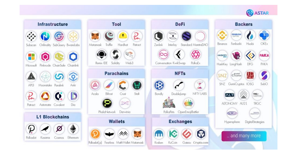 Astar Networkはローンチ前の段階で、ChainlinkやAPI3などのインフラストラクチャー系プロジェクトが対応を発表、Acalaなど他のParachainプロジェクトとも連携が発表されています。