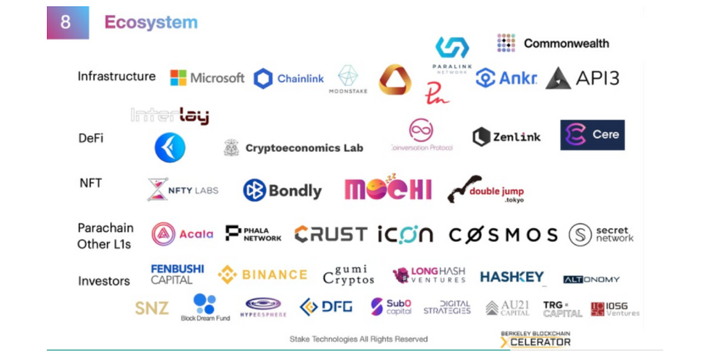 Stake Technologiesは過去にはPolkadotエコシステム内で最多となる全7回の助成金を、Polkadotの開発主体であるWeb3 Foundationから獲得しています。2021年1月には世界で初めてPolkadotのテストネット接続に成功し、一環してPolkadotのエコシステムに関わってきています。