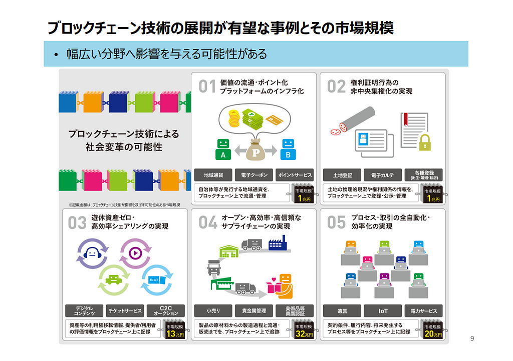 まず最初に2016年に経産省が発表したブロックチェーンのユースケースと、市場規模を表した図です。