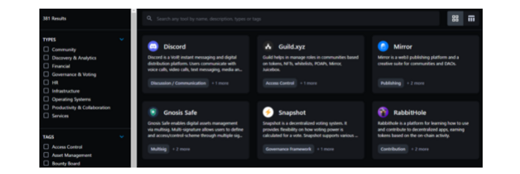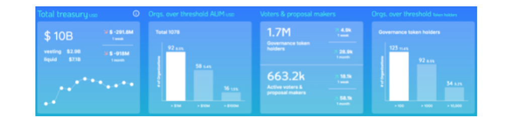 DAOに関するデータをまとめているDeepDAOの試算では、4834のDAOと100億ドルの資産、66万3千人のアクティブな投票者と提案者がおり、比例してツールも多様化していくと推測されます。