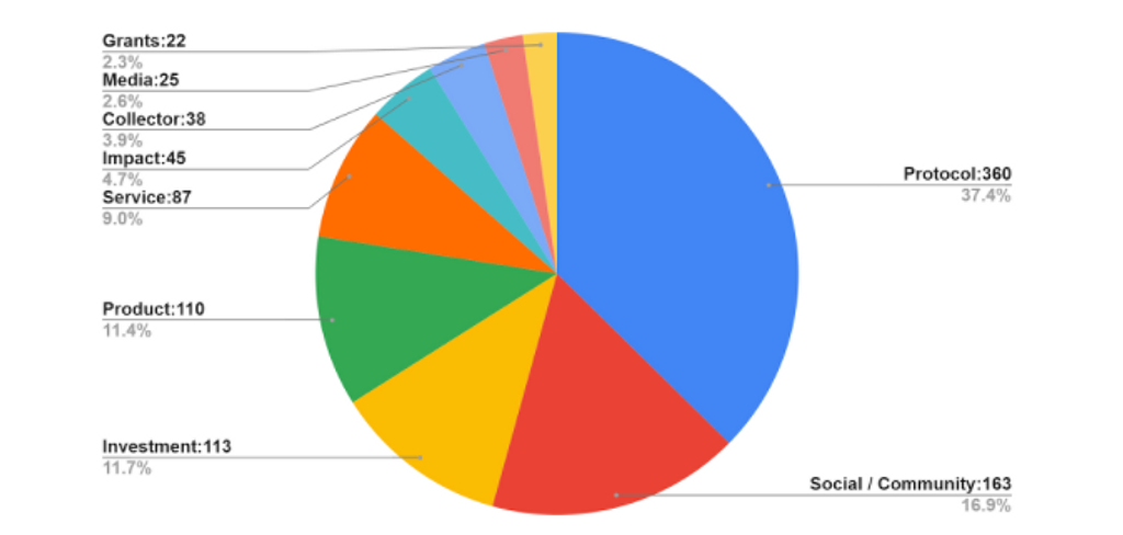 Serviceカテゴリーは全体の9%ですが、DAOツールの開発やDAO2DAOのインフラを整える役割を担う傾向があることから、DAOの発展に比例して増えていくと予測されます。
