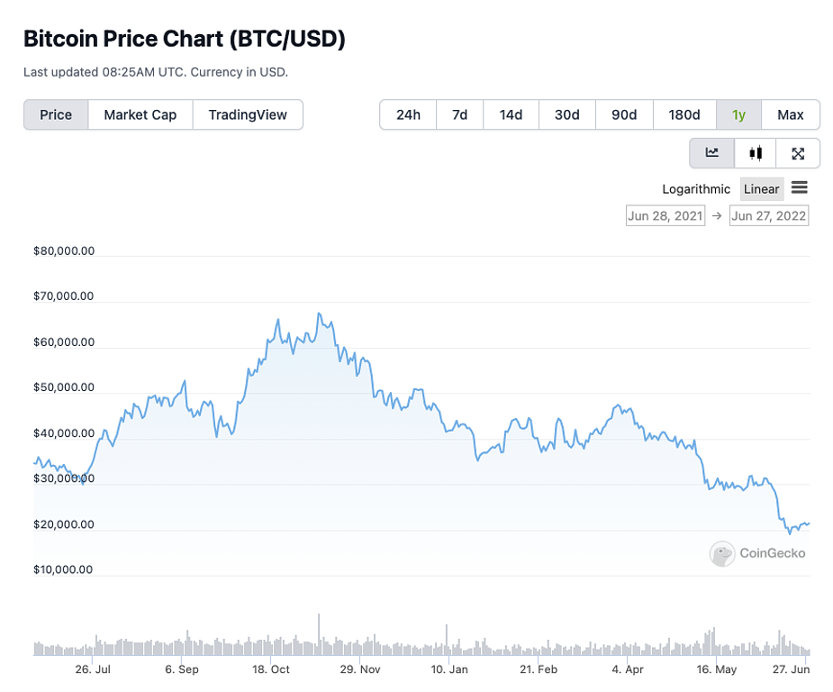 2022年6月は暗号資産が続落しました。Bitcoinは年初来で50%安になっており、厳しい相場展開になっています。