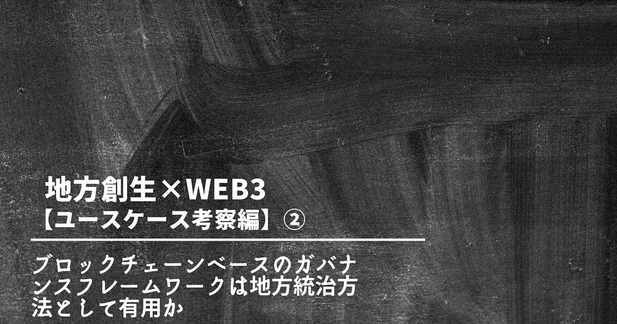地方創生×Web3【ユースケース考察編】②|ブロックチェーンベースのガバナンスフレームワークは地方統治方法として有用か