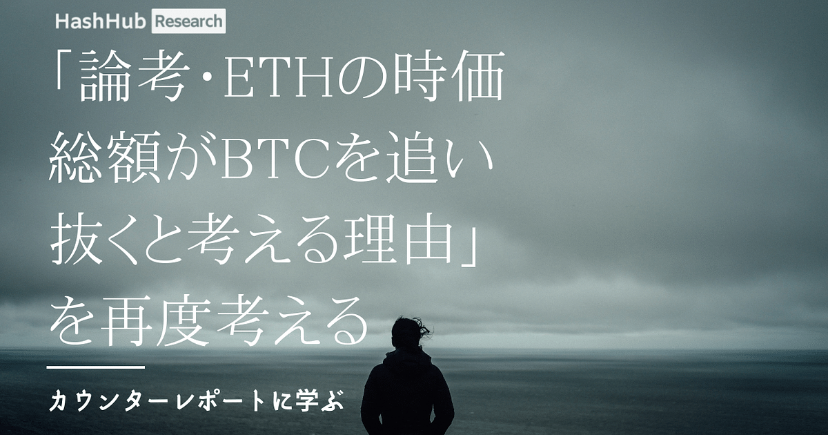本レポートではETHの時価総額がBTCを追い抜く可能性について下記のレポートに反論を述べます。