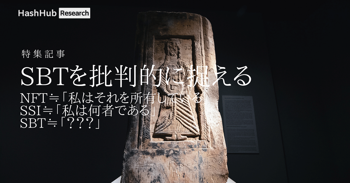 「SBTを批判的に捉える」特集|NFT≒「私はそれを所有している」、SSI≒「私は何者である」、SBT≒「???」