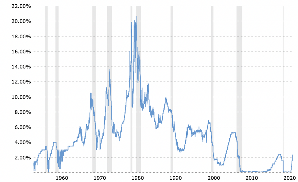 上記のグラフはFederal Funds Rateの過去60年の推移ですが、利上げをしても2%少々なので未だ歴史的に金利は低い水準でこれから上昇する余地を残していることが分かります。