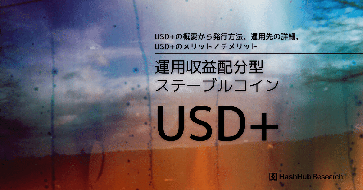 今回は運用収益配分型のステーブルコインであるUSD+をご紹介します。運用をプロジェクトに委託することができ、USD+を保有することで利回りを獲得することができるプロジェクトです。本レポートでは、USD+の概要から発行方法、運用先の詳細、USD+のメリット/デメリットを説明します。