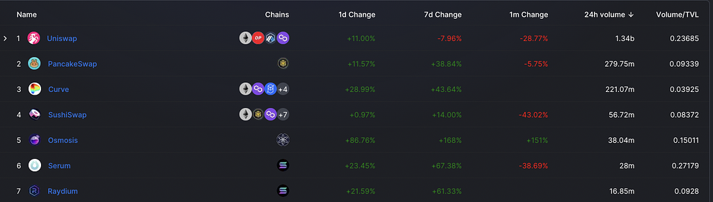 UniswapやCurveなど単体分散型取引所と比べても第5位の規模となっています。