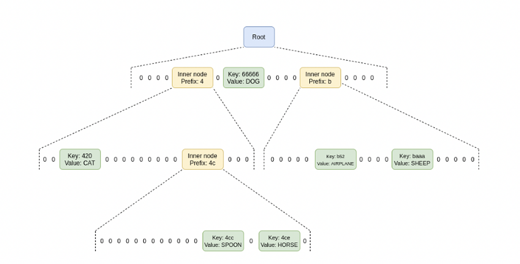 現在、Ethereumのステートは、マークルツリーと呼ばれるデータ構造で、アカウントデータなどがハッシュ化されてツリー上に保存されています。アーキテクチャのイメージ図は下記です。