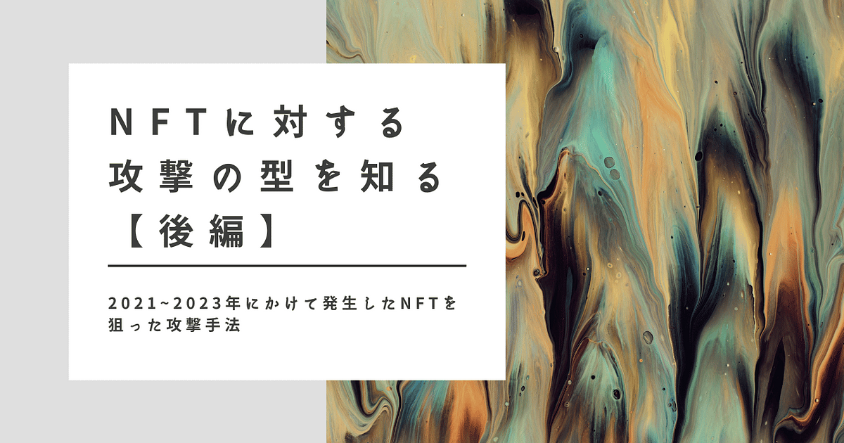 ※本レポートでは2021年夏以降のNFTを狙った過去の事件を参考にしながら「NFTに対する代表的な攻撃手法」を解説していきます。なお、本レポートは【前編】【中編】【後編】で構成しています。