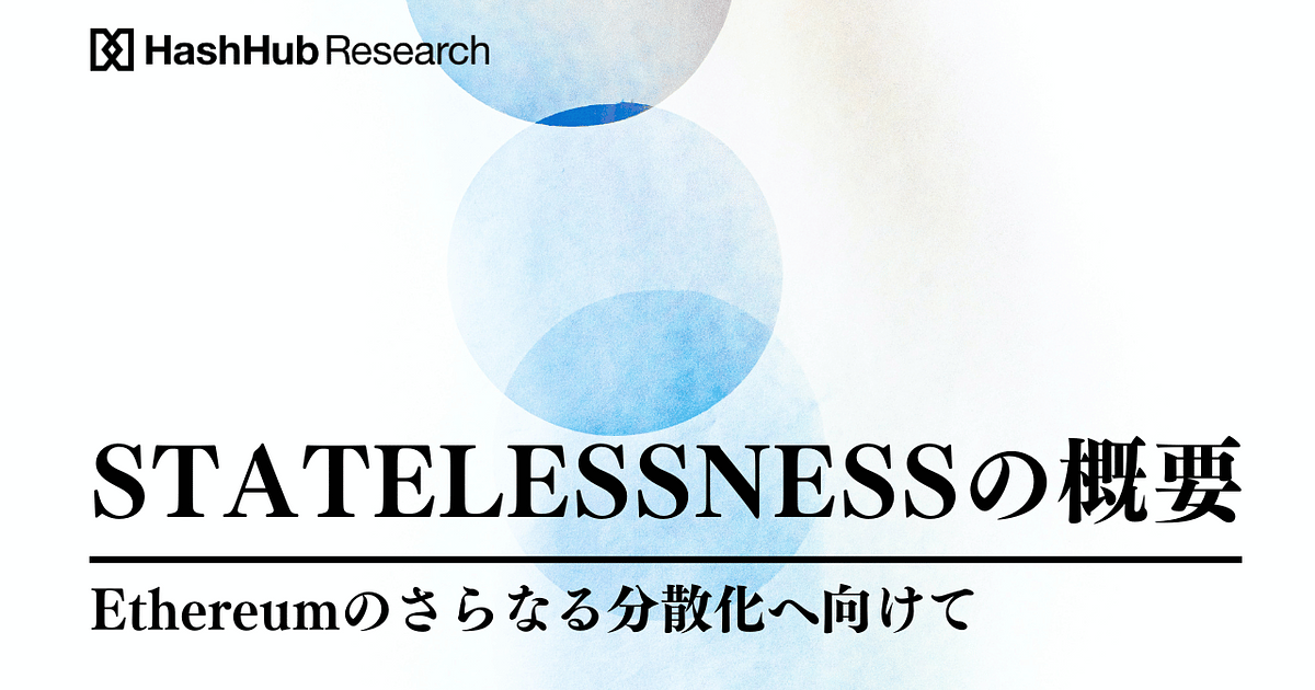 本レポートではVitalik氏やEthereum開発者コミュニティが推し進める「Statelessness(ステートレス性)」を概説します。以前より議論がありましたが、直近のイベントでVitalikが改めて言及するなど重要性が伺えます。