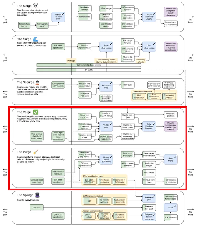 Ethereumのロードマップでは「The Surge」「The Scourge」の後にある「The Verge」「The Purge」で主要な実装が予定されています。直ぐに変化は起こりませんが、Statelessnessを理解することでEthereumが抱える課題の把握や、発展性を判断する材料になります。