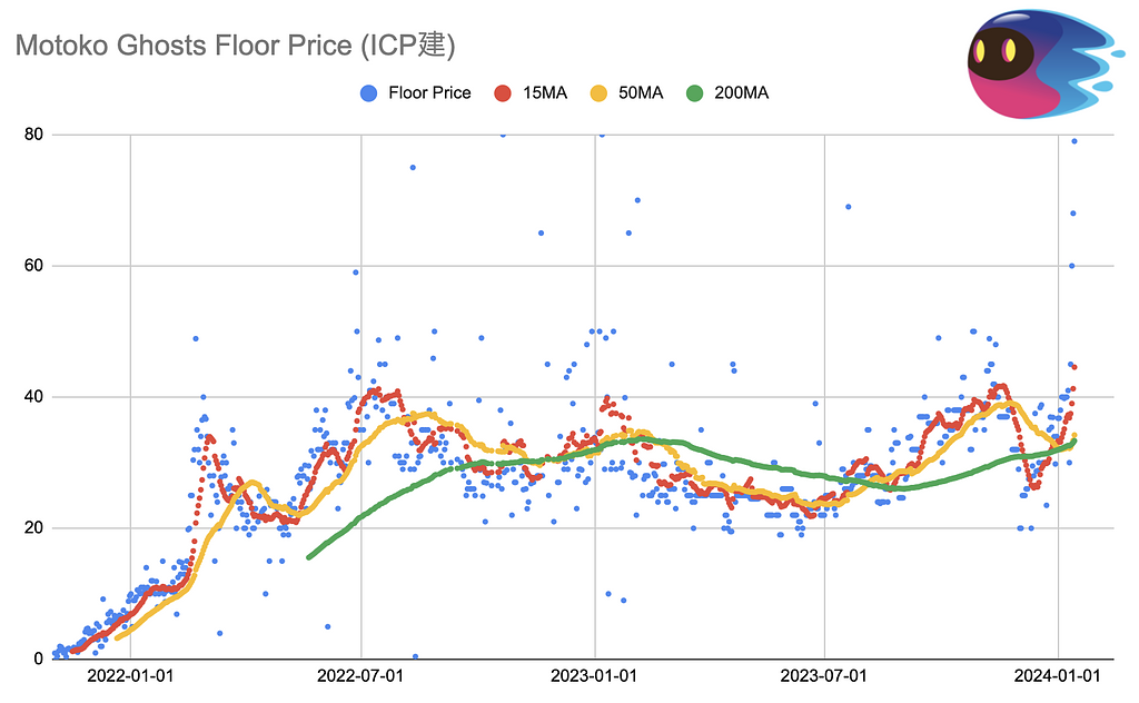 それが、ICP NFTを代表するプロジェクトの一つである、「Motoko Ghosts」の盛り上がりになります。
