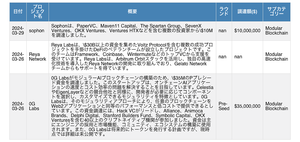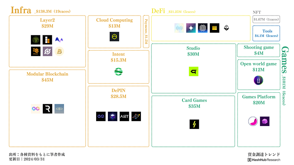 本シリーズでは、どのようなWeb3.0関連のスタートアップやプロジェクトに資金が集まっているのか、その最新の傾向とパターンを解説します。今回の#14では、2024年3月23日から2024年3月29日にかけての資金調達活動を調査し、どのカテゴリーが最も注目を集め、どのような特徴が見られるのかを分析しています。