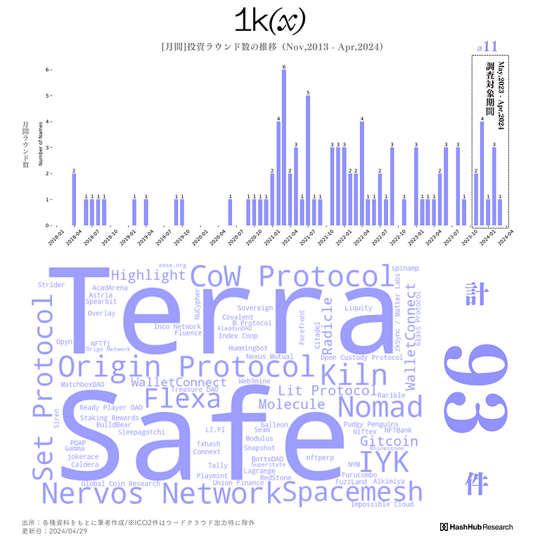 2023年11月から2024年4月29日までのおよそ半年間に「1kx」が行った暗号資産領域の投資先の整理とその投資傾向を本レポートで解説します。