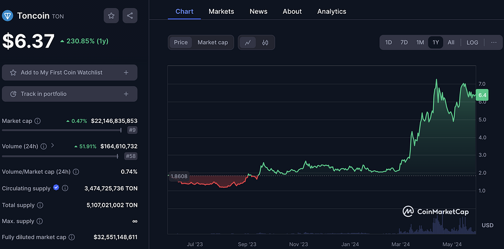 その後、ICOで調達した資金の返還、罰金を支払い、2021年にコミュニティ主導でTON Foundationが設立され、TONの開発がTelegramから引き継がれました。この際、Telegram Open NetworkからThe Open Networkへとリブランディングされています。かつて非常に注目を集めたプロジェクトですが、その後は低浮上気味でした。