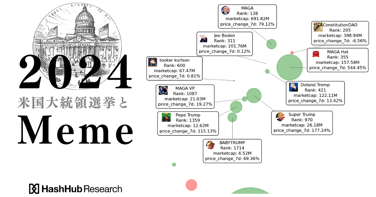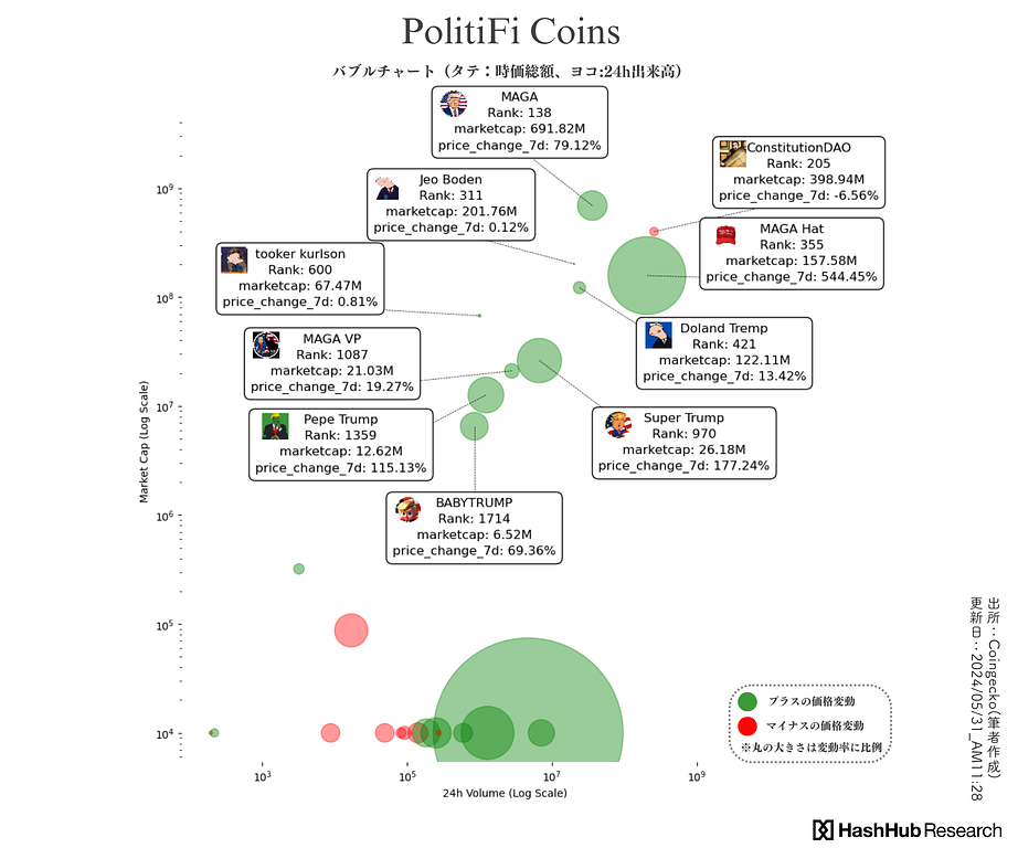 ※本レポートは弊社公開レポート「2024年米国大統領選挙とビットコイン」に感化されて、筆者の気まぐれでなんとなく調査した米国政治をモチーフにしたミームコイン「PolitiFiコイン」の現況を記した即席レポートです。「PolitiFiコイン」の現況を可視化するのみで考察等は一切含みません。