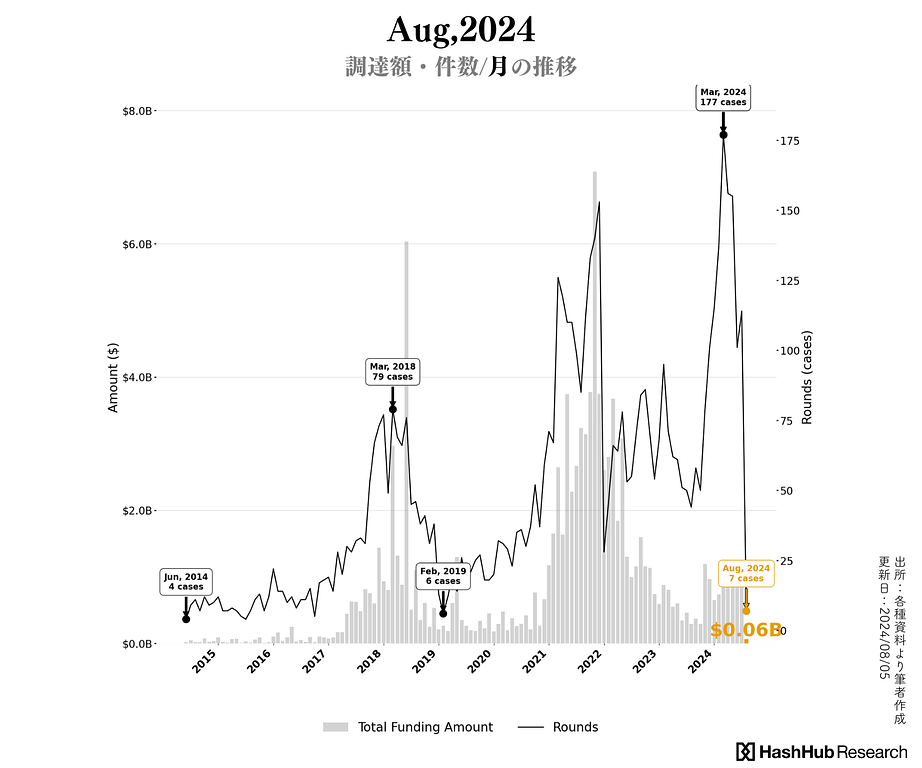 以下、「2024年8月」「直近1週間」「2024年度Q3」の資金調達の潮流を概説します。
