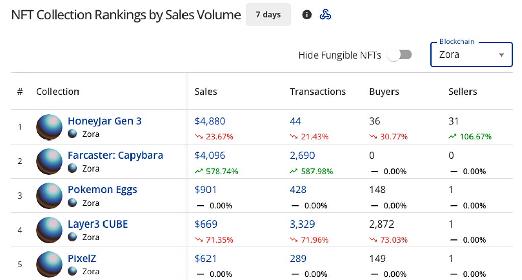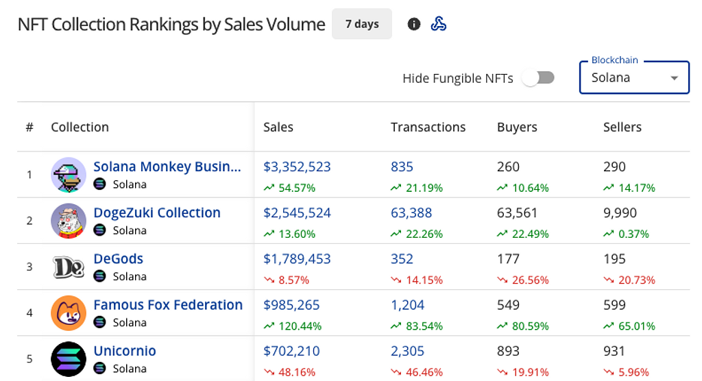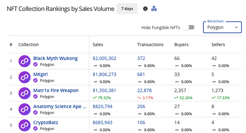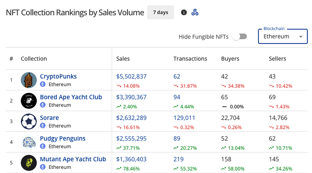 以下、取引量(上位2)及び取引数(上位2)の計4つのブロックチェーン上で過去7日間に活発に取引されているNFTを記録として残します。