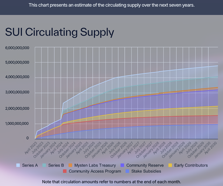トークン供給量は、SUIトークンの総供給量は100億枚に固定されています。2023年5月3日のローンチ時には総供給量の約5%が市場に流通しました。残りのトークンは、計画的に徐々に市場に放出される予定です。