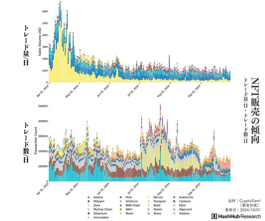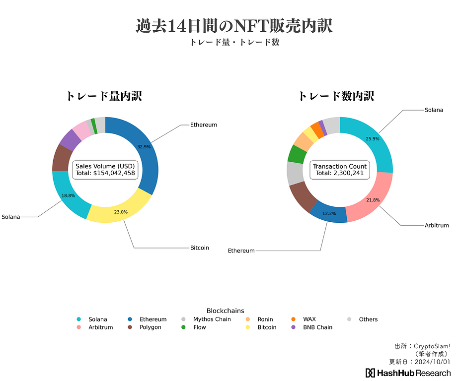 - 9月後半からSolanaのトレード数は増加傾向にある一方で、Polygonのトレード数は減少傾向に