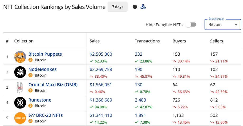 - 一時的にBitcoin NFTのトレード量増しているが、主な変化は見受けられない
