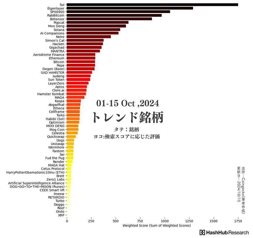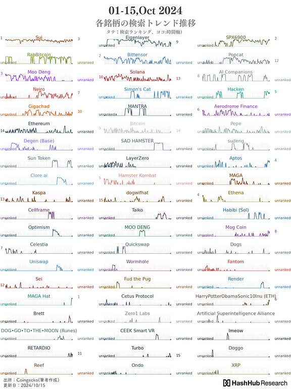 検索トレンドから暗号資産の潮流を読み解く|01-15 Oct ,2024|コビトカバのMOODENG関連ミームコイン...etc