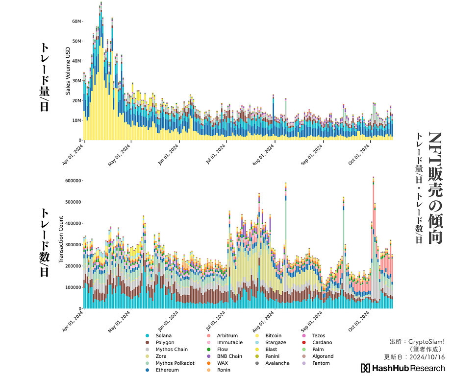 - 9月中旬あたりからArbitrumのトレード数増。10月以降も継続。
