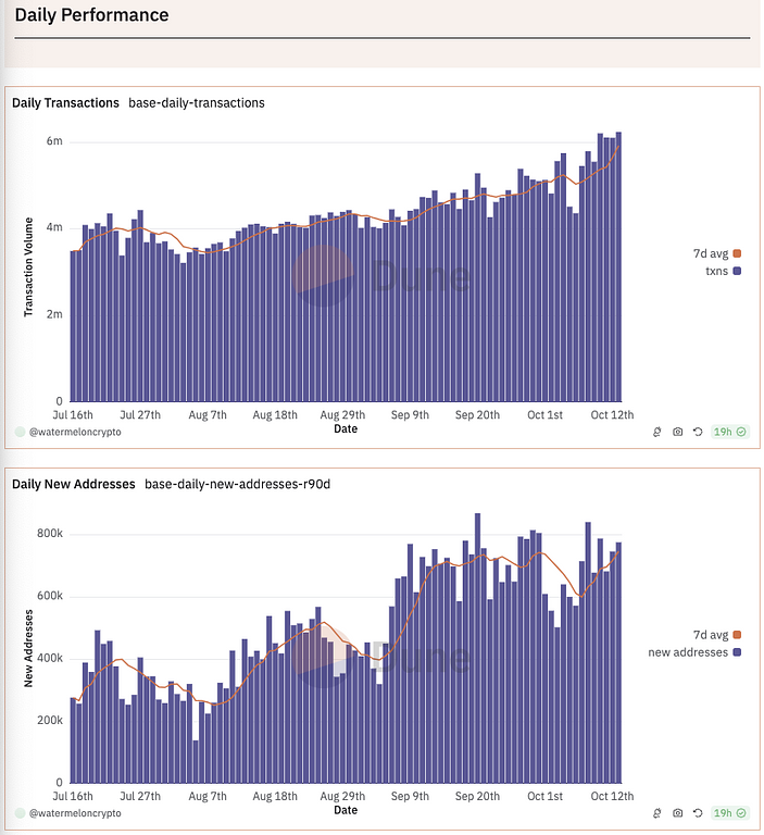 Baseのデイリートランザクション、デイリーでの新しいアドレスは増加傾向にあります。9月はこの3ヶ月(7-9)で最も新しいアドレスが増えている期間となりました。