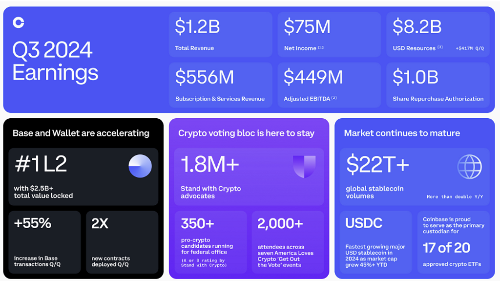 - Coinbase 2024年Q3の収益状況