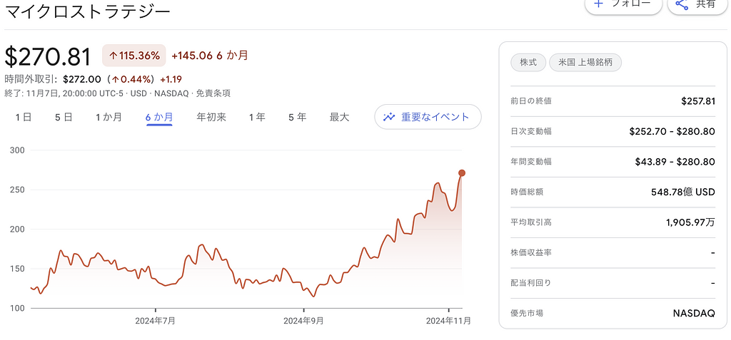 マイクロストラテジー(MSTR)2024年Q3 決算分析、株価のプレミアムは適正評価か過大評価か?