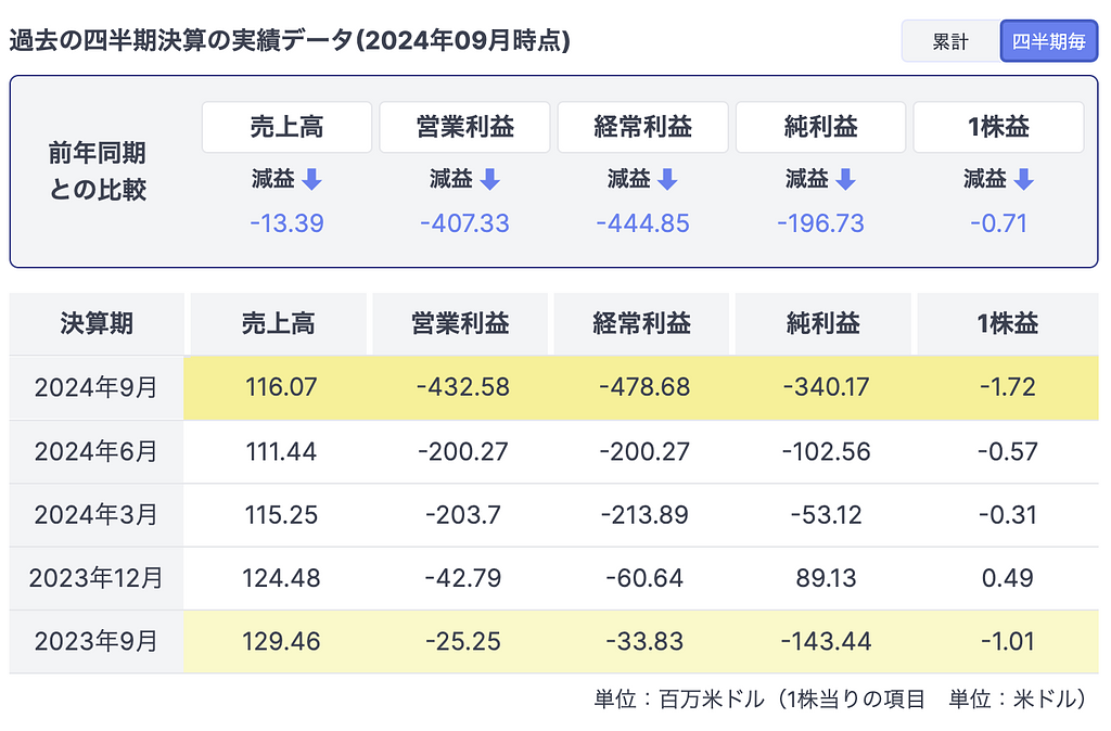 しかし、営業費用は前年同期比で301.6%も増加し、特にデジタル資産の減損損失が4億1,210万ドルと大きく影響しています。その結果、Q3の営業損失は4億3,260万ドルに達し、前年同期の2,520万ドルから大幅に悪化しています。