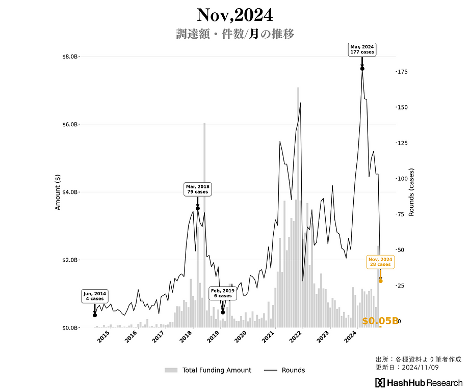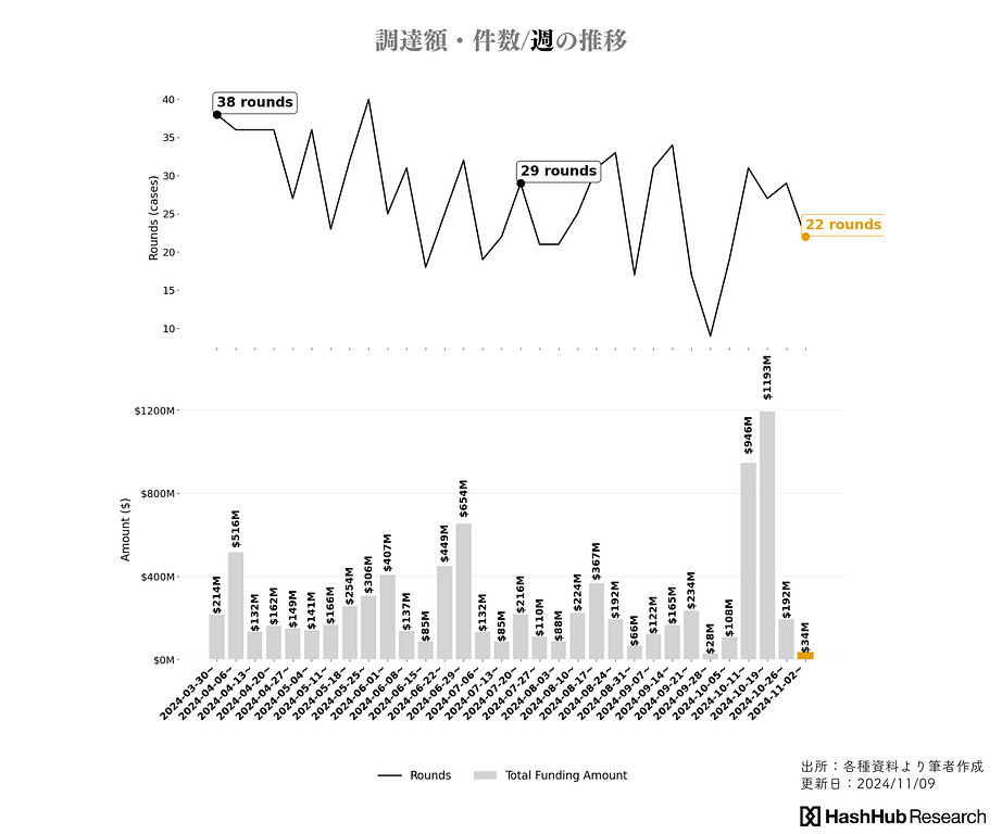 以下、「2024年11月」「直近1週間」「2024年度Q4」の資金調達の潮流を概説します。