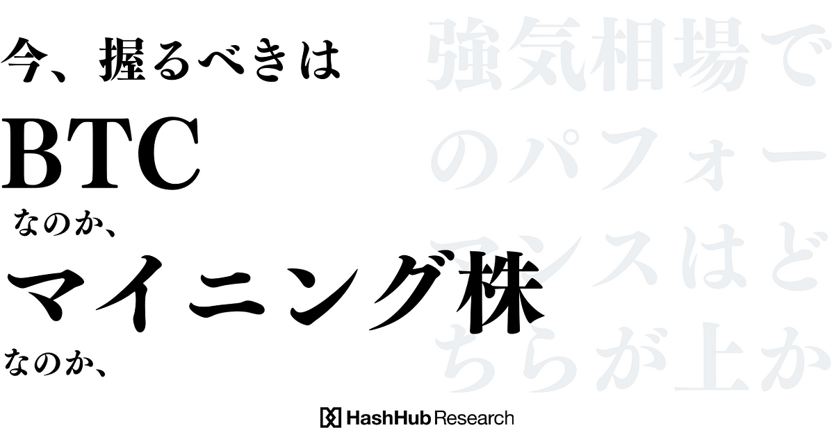 今握るべきは、Bitcoin(BTC)なのか、マイニング株なのか|強気相場でのパフォーマンスはどちらが上か、をテーマにした調査結果を5分程度でさらっと読めるボリュームにまとめて共有します。