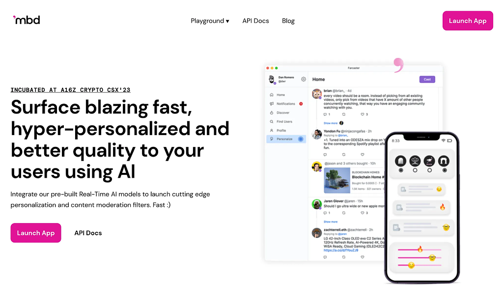 mbdは、Web3ソーシャルアプリ向けのコンテンツモデレーションと推薦AIプロトコルの構築を目指す「Web3×AI」領域の振興プロジェクトです。mbdの中心的な理念は、AIアルゴリズムの透明性を高め、ユーザーに選択権を取り戻すことであり、AIが私たちのデータでトレーニングされている現状において、得られる利益がデータ提供者に還元される仕組みを構築することを目指しています。