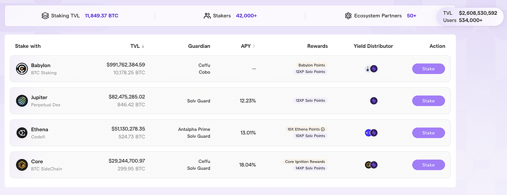 Solv Protocolは、ステーキング、トークンの発行、報酬分配などのプロセスを自動化するスマートコントラクトに大きく依存しています。