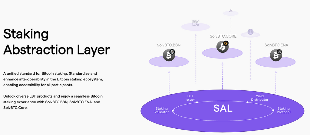 SALは、ビットコインのステーキングに伴う複雑さを抽象化し、ユーザーに統一されたインターフェースを提供するSolv Protocolの中核技術です。